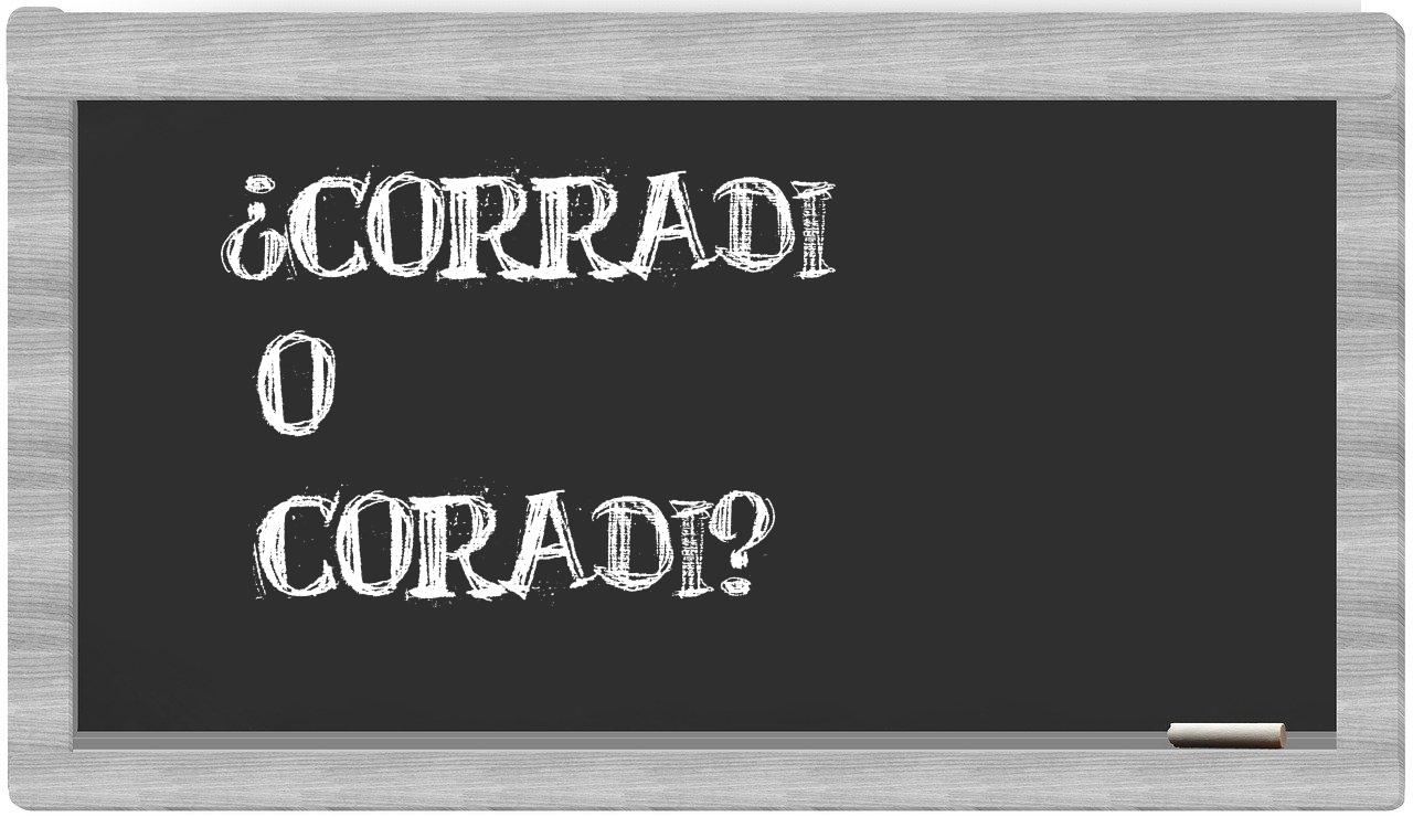 Cuando se trate de la elección entre corradi y coradi, no deberías titubear, pues únicamente corradi es la opción que figura correctamente en el Diccionario de la Real Academia Española, mientras que coradi carece de tal reconocimiento.