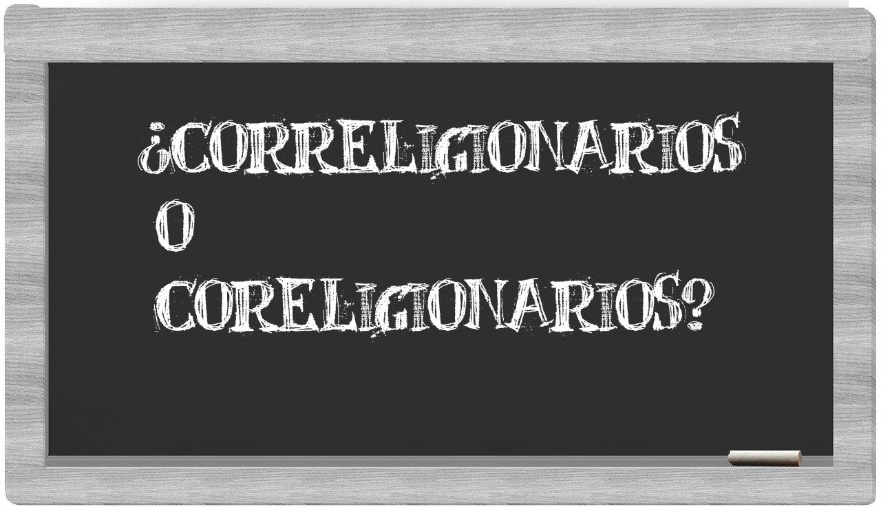 Cuando se trate de la elección entre correligionarios y coreligionarios, no deberías titubear, pues únicamente correligionarios es la opción que figura correctamente en el Diccionario de la Real Academia Española, mientras que coreligionarios carece de tal reconocimiento.