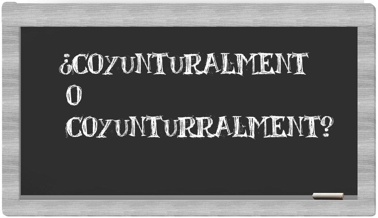 En la particular situación que involucra las expresiones coyunturalment y coyunturralment, no deberías titubear en tu elección, dado que únicamente coyunturalment es la forma correcta; por otro lado, coyunturralment no se encuentra registrada en el Diccionario de la Real Academia Española.
