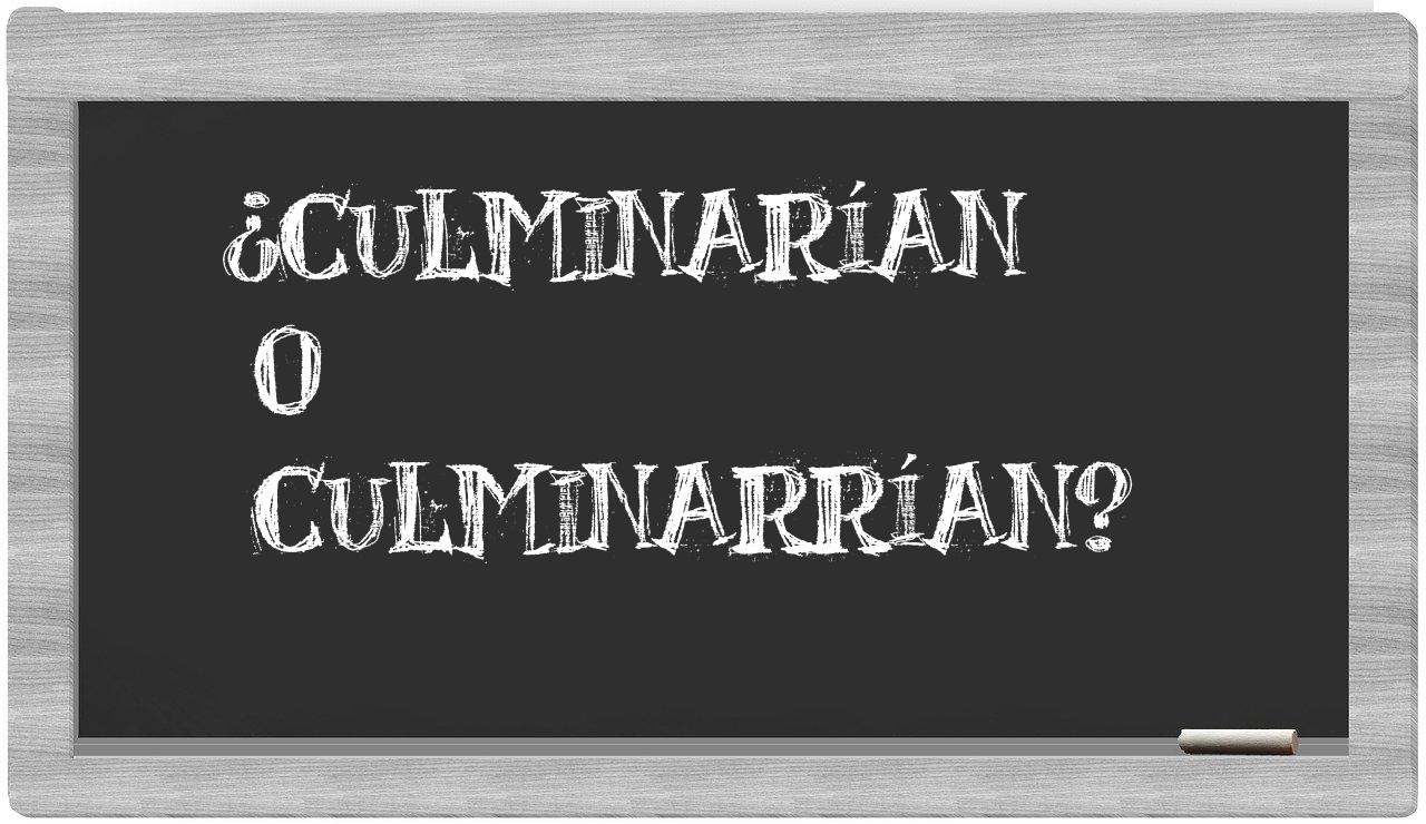 Cuando te enfrentes a la elección entre culminarían y culminarrían, no pierdas tiempo en la incertidumbre, porque solo culminarían se encuentra adecuadamente registrada. Por el contrario, culminarrían carece de reconocimiento en el Diccionario de la Real Academia Española.