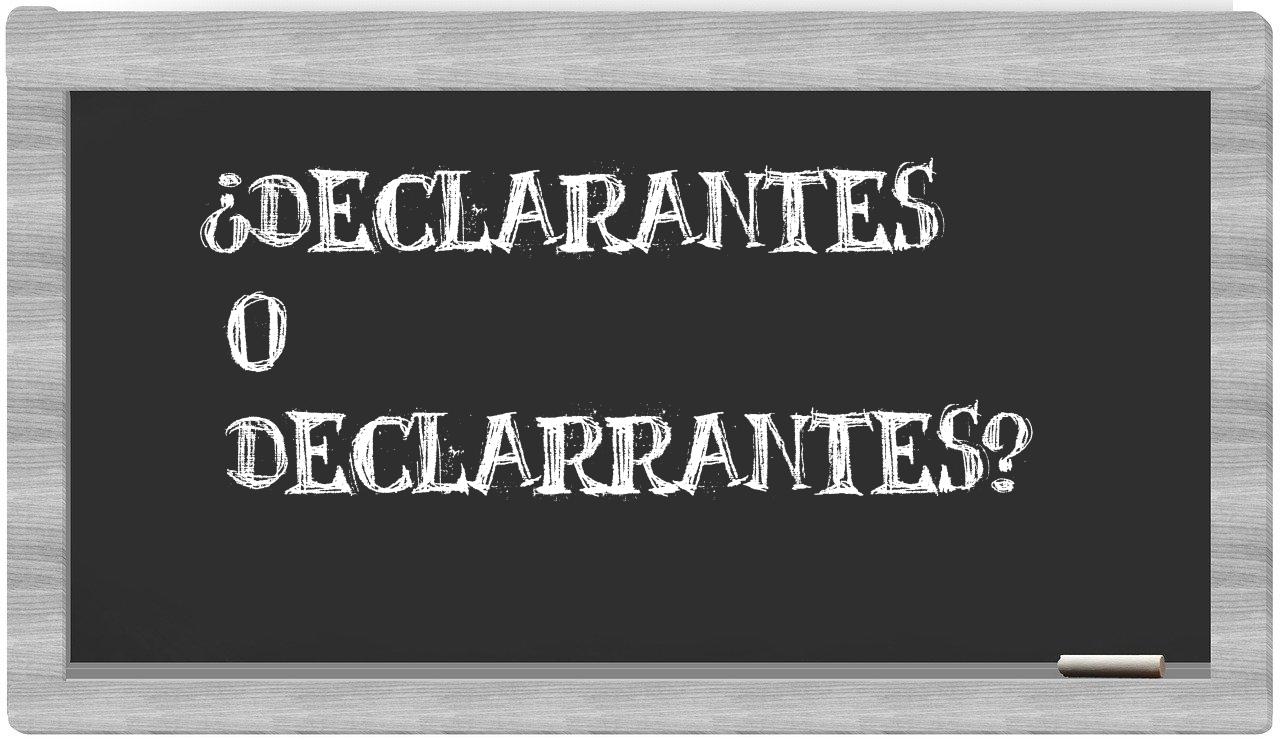 Cuando se trata de la elección entre declarantes y declarrantes, no hay motivo para titubear, puesto que únicamente declarantes posee la escritura adecuada; declarrantes, por su parte, no figura en el repertorio de la Real Academia Española.