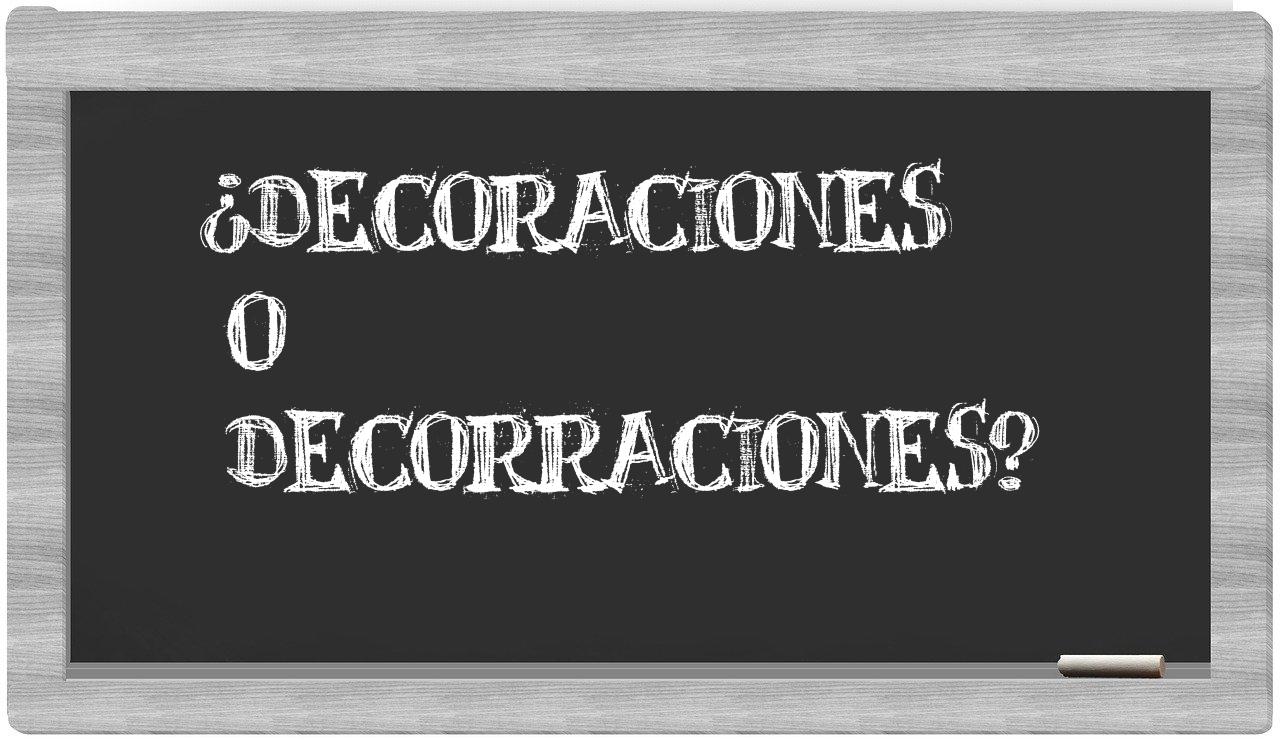 Cuando te enfrentes a la relación entre decoraciones y decorraciones, no vaciles en tu elección, pues únicamente decoraciones está correctamente plasmada, mientras que decorraciones no figura en el prestigioso Diccionario de la Real Academia Española.