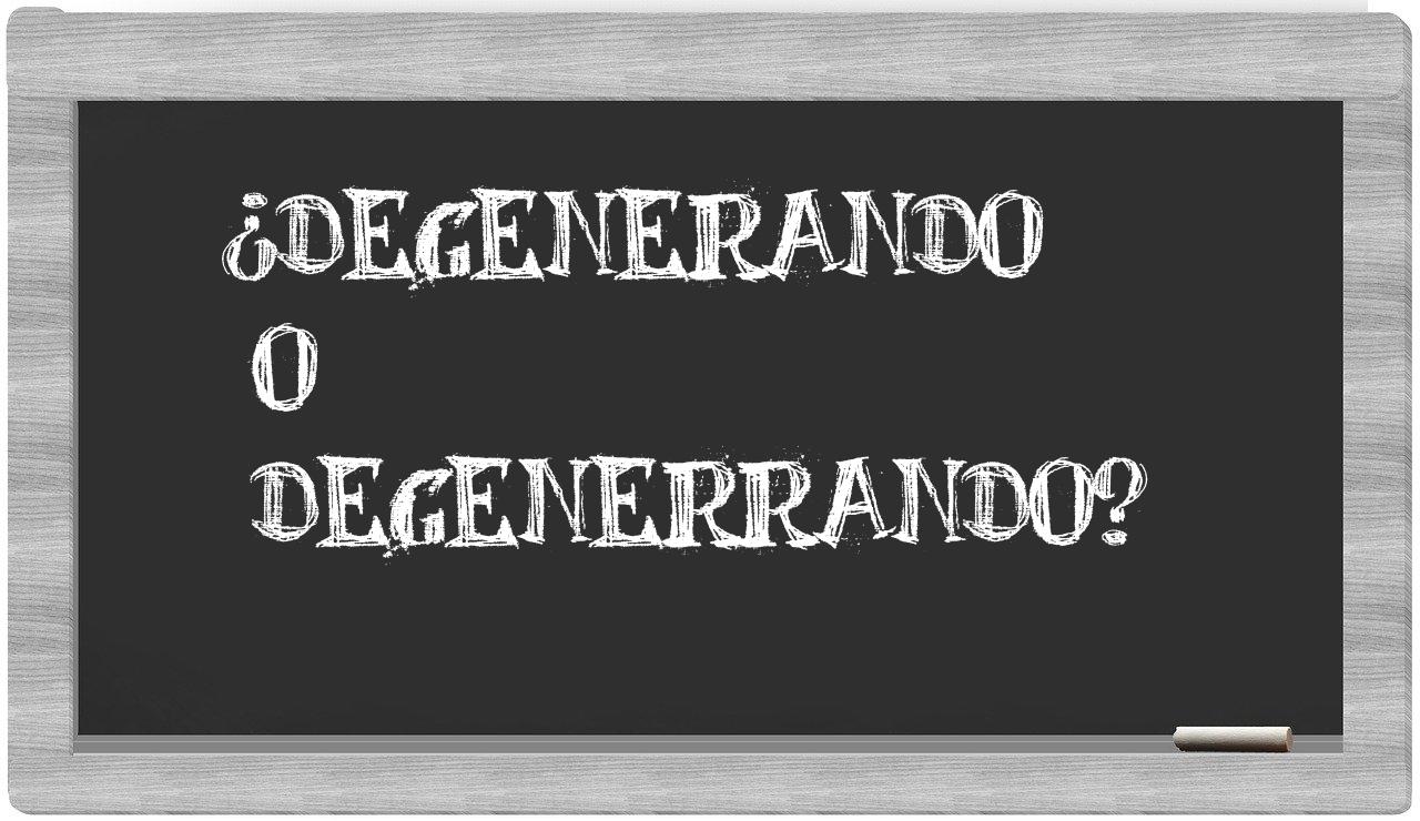 Cuando se trata de elegir entre degenerando y degenerrando, no deberías vacilar en absoluto, puesto que únicamente degenerando es la forma adecuada reconocida, mientras que degenerrando carece de validez en el diccionario de la Real Academia Española.
