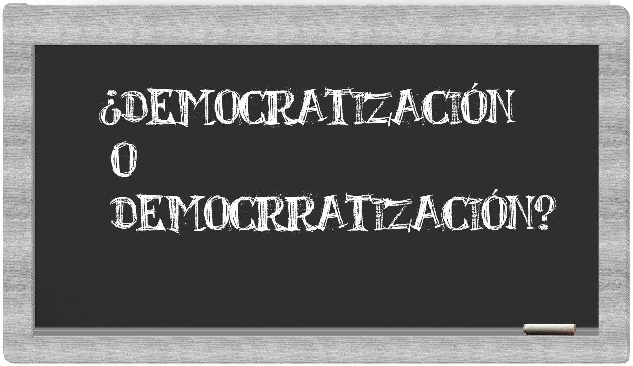 En la particular situación que involucra los términos democratización y democrratización, no hay lugar para la incertidumbre, porque solo democratización se presenta como la opción adecuada; de hecho, democrratización no se encuentra contemplada en el Diccionario de la Real Academia Española.