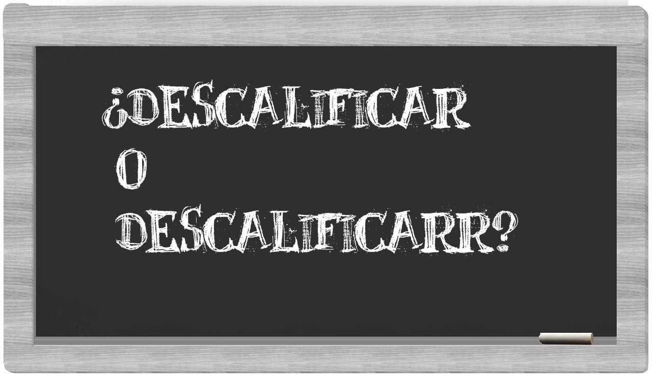 Cuando se presenta la distinción entre descalificar y descalificarr, no hay lugar para la incertidumbre, puesto que únicamente descalificar es la forma adecuada. Por otro lado, descalificarr no se encuentra registrada en el Diccionario de la Real Academia Española.