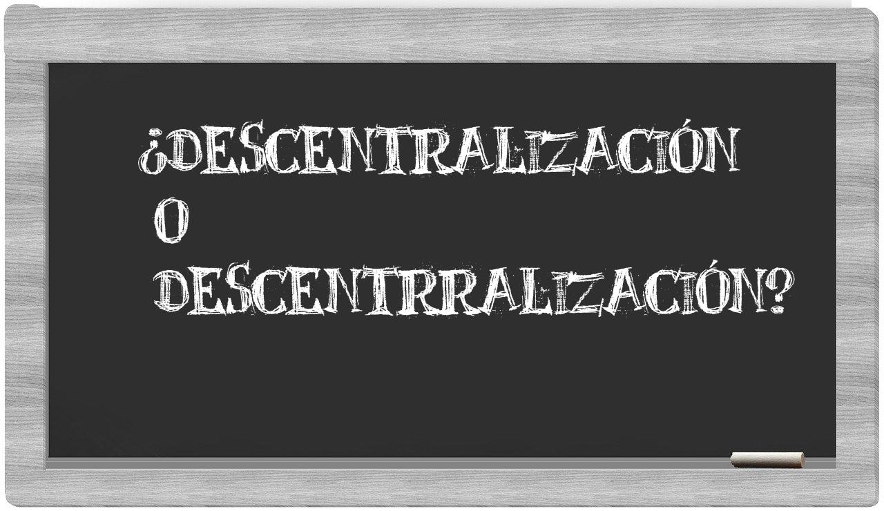 Cuando te enfrentes a la disyuntiva entre descentralización y descentrralización, ten certeza de que solo descentralización cuenta con la escritura adecuada, puesto que descentrralización no se encuentra registrada en el Diccionario de la Real Academia Española.