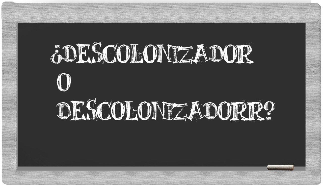 Cuando se trata de la relación entre descolonizador y descolonizadorr, no debes titubear en tu elección, puesto que únicamente descolonizador se encuentra adecuadamente registrada. La forma descolonizadorr no figura en el prestigioso Diccionario de la Real Academia Española.