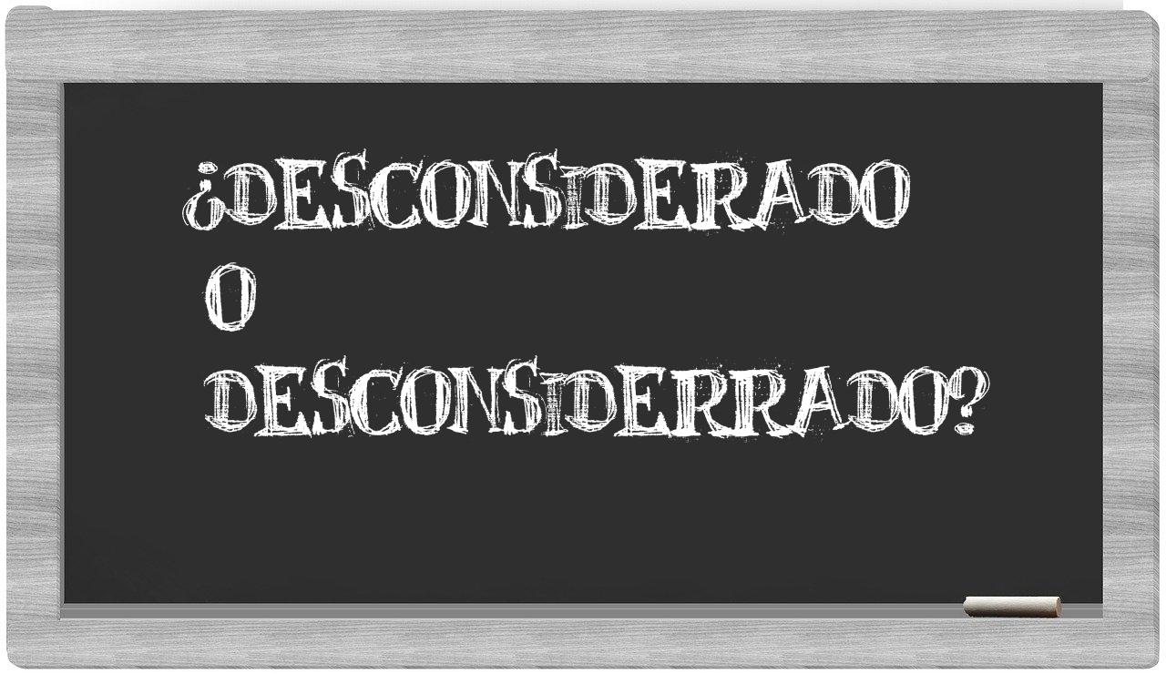 Cuando se trata de las palabras desconsiderado y desconsiderrado, no deberías titubear, puesto que únicamente desconsiderado es la que se presenta correctamente, mientras que desconsiderrado no se encuentra registrada en el Diccionario de la Real Academia Española.