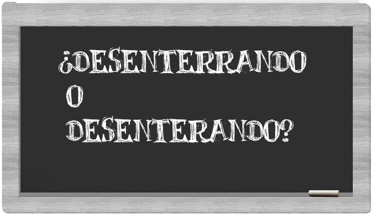 En el contexto específico que involucra los términos desenterrando y desenterando, es fundamental no titubear, puesto que únicamente desenterrando se presenta como la opción adecuada; por otro lado, desenterando no se encuentra registrada en el Diccionario de la Real Academia Española.