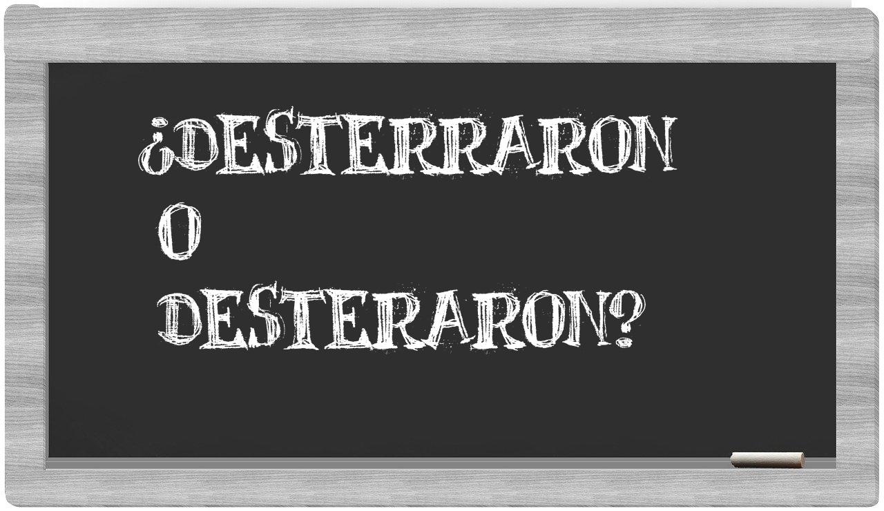 Cuando se trata de decidir entre desterraron y desteraron, no deberías titubear, puesto que solo desterraron es la forma adecuada. En cambio, desteraron no figura en el Diccionario de la Real Academia Española.