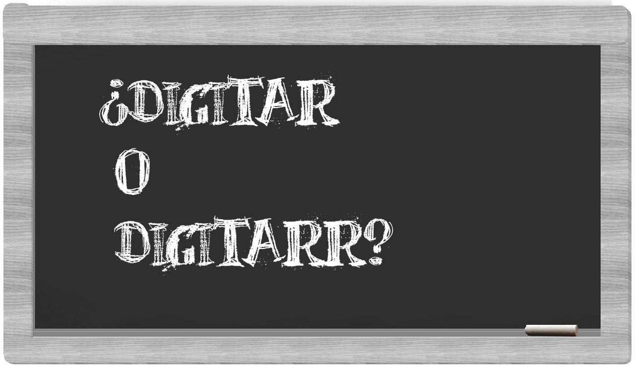 Cuando se presenta la situación entre los términos digitar y digitarr, no deberías titubear, dado que únicamente digitar es la forma adecuada y reconocida. Por otro lado, digitarr no se encuentra en los registros del Diccionario de la Real Academia Española.