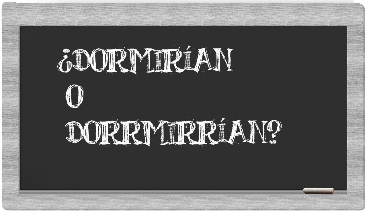 Cuando se trata del dilema entre dormirían y dorrmirrían, no hay lugar para la incertidumbre, dado que solamente dormirían se encuentra adecuadamente formalizada en nuestra lengua, mientras que dorrmirrían carece de reconocimiento en el Diccionario de la Real Academia Española.