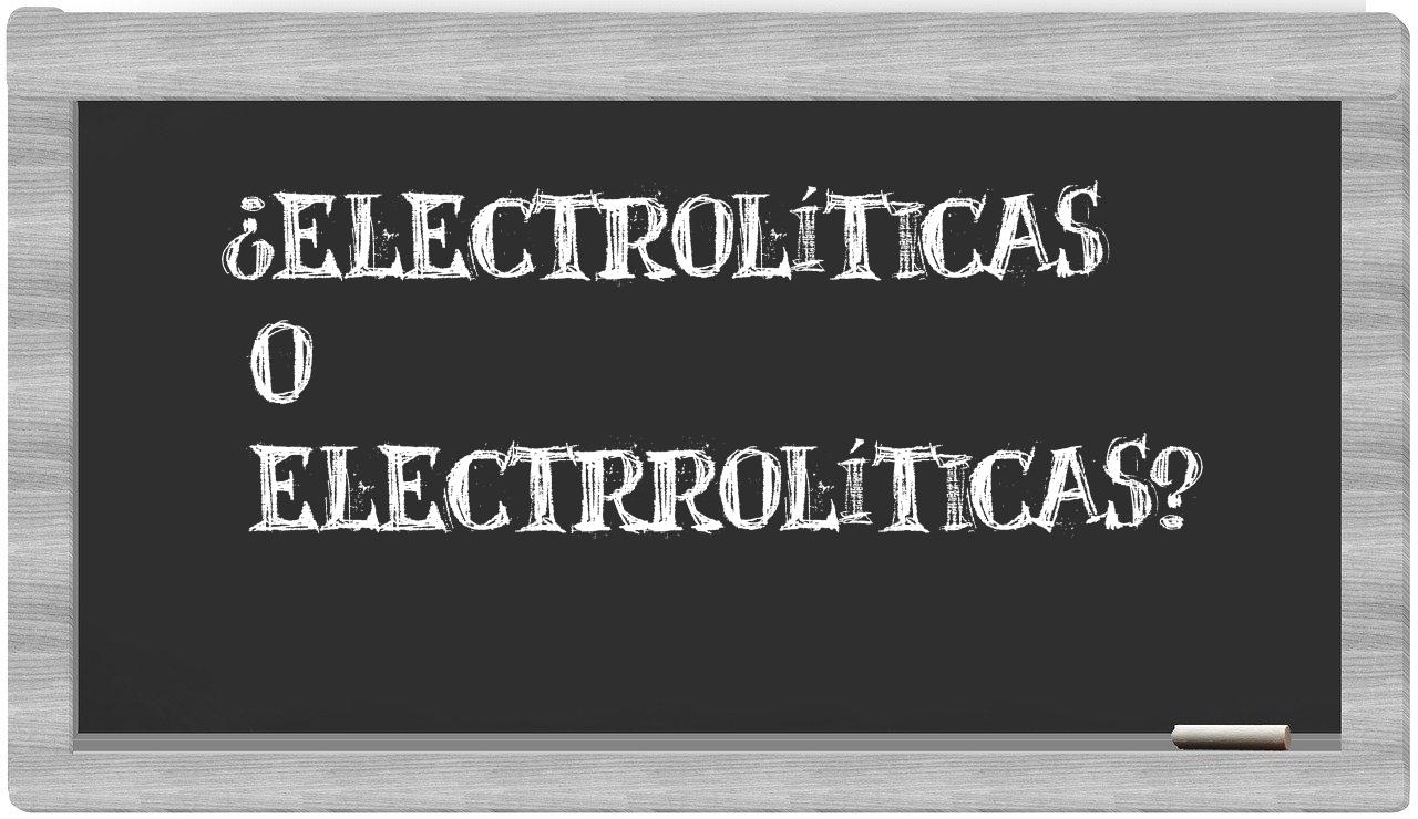 En la situación particular que involucra a electrolíticas y electrrolíticas, no deberías titubear en absoluto, puesto que únicamente electrolíticas se encuentra correctamente redactada. Por su parte, electrrolíticas no figura en el prestigioso Diccionario de la Real Academia Española.