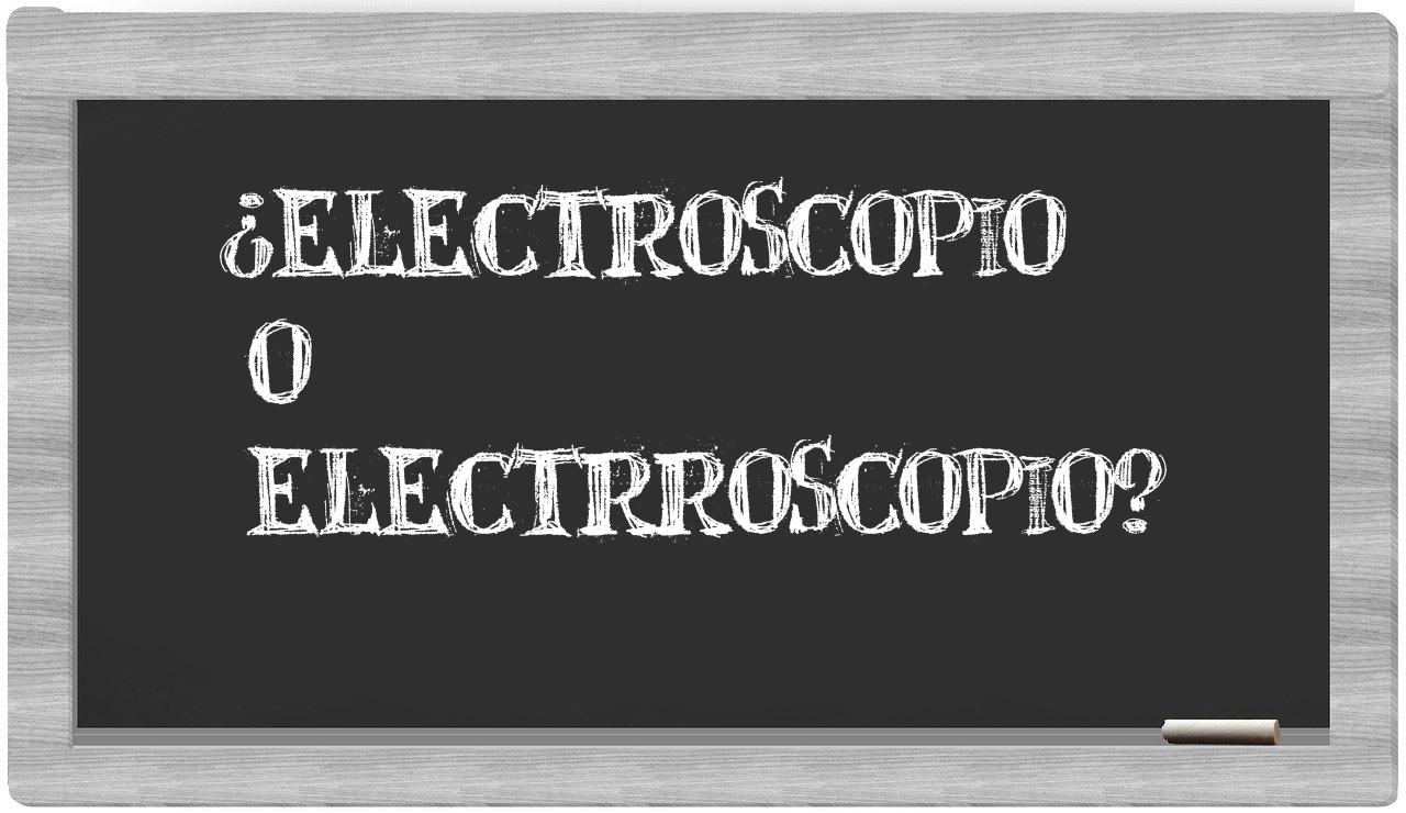 Cuando se trata de la distinción entre electroscopio y electrroscopio, la confusión no tiene lugar, puesto que únicamente electroscopio está registrada adecuadamente. Por otro lado, electrroscopio carece de reconocimiento en el Diccionario de la Real Academia Española.