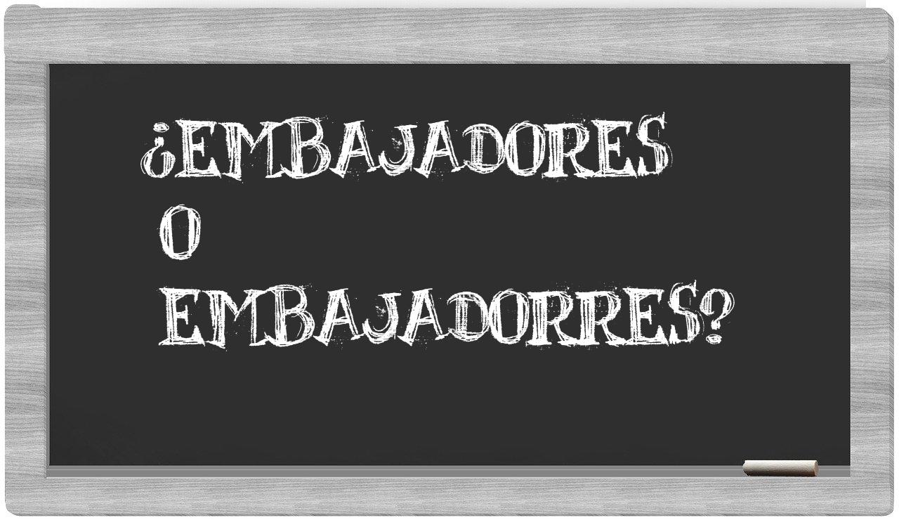 Cuando te enfrentes a la elección entre embajadores y embajadorres, no vaciles ni un instante, puesto que únicamente embajadores es la forma adecuada. Recuerda que embajadorres carece de reconocimiento en el Diccionario de la Real Academia Española.