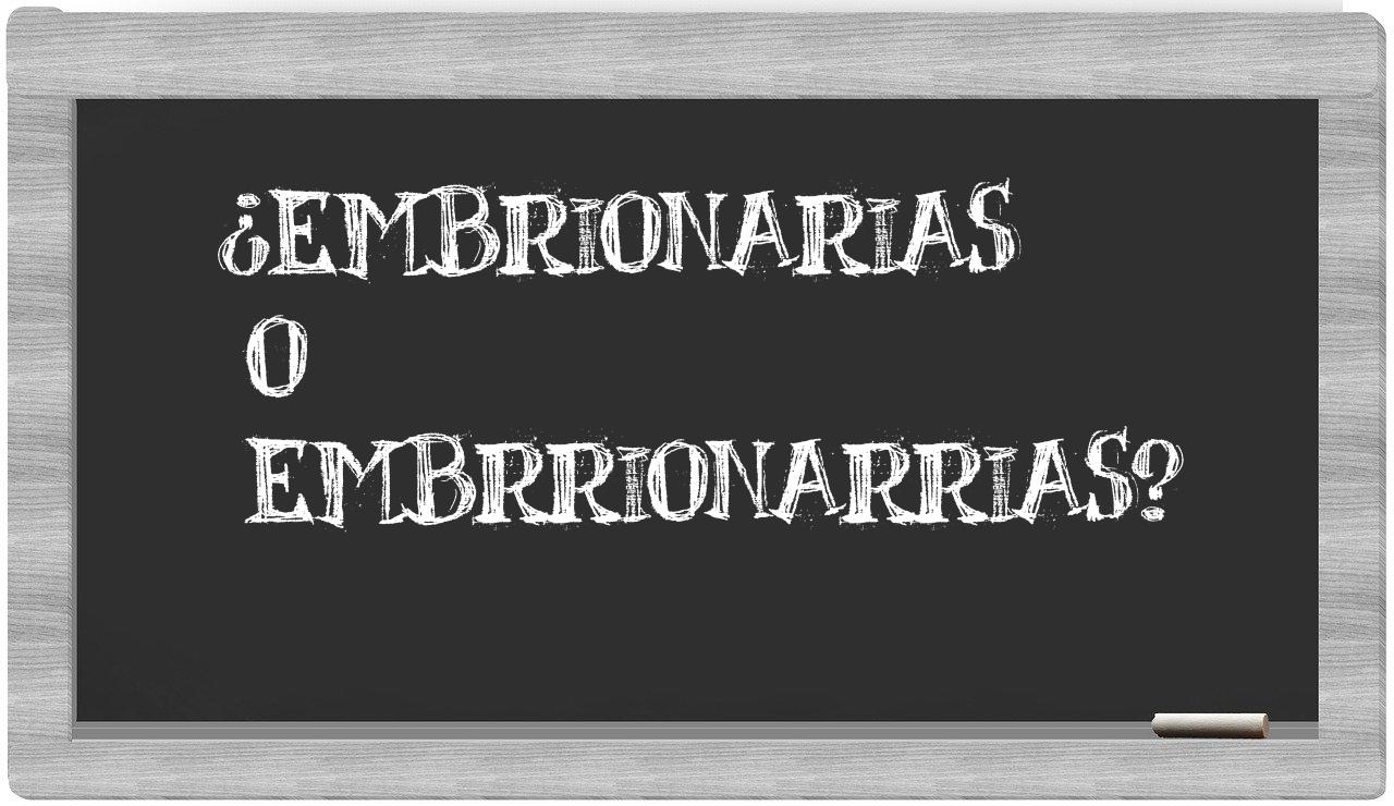 En la situación específica que involucra los términos embrionarias y embrrionarrias, no debería haber incertidumbre alguna, puesto que únicamente embrionarias se presenta correctamente, mientras que embrrionarrias no se encuentra registrada en el Diccionario de la Real Academia de la Lengua.