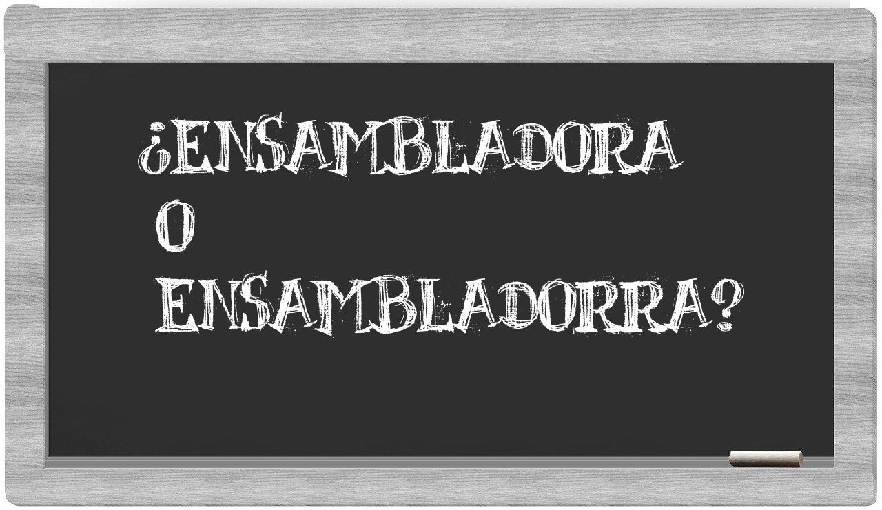 En la situación específica que involucra los términos ensambladora y ensambladorra, no deberías titubear, pues únicamente ensambladora se encuentra debidamente redactada. Por otro lado, ensambladorra no se halla en el léxico de la Real Academia de la Lengua.