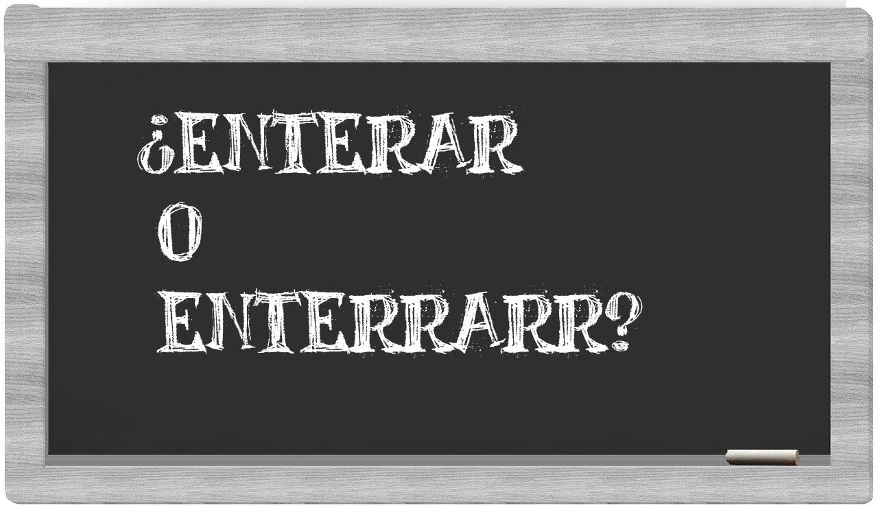 En el contexto específico que involucra los términos enterar y enterrarr, es fundamental no titubear, puesto que únicamente enterar se presenta como la opción adecuada; por otro lado, enterrarr no se encuentra registrada en el Diccionario de la Real Academia Española.