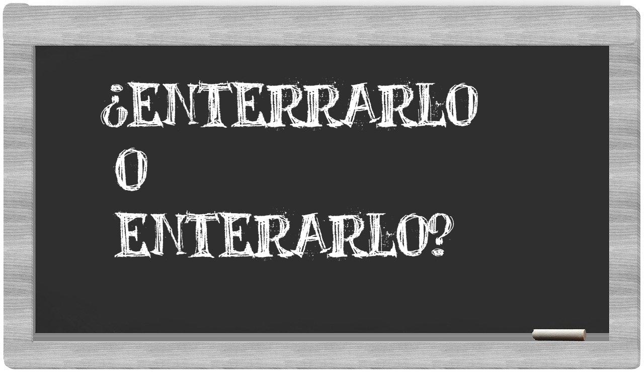 Cuando se trata de distinguir entre enterrarlo y enterarlo, es fundamental que no vaciles, puesto que únicamente enterrarlo está debidamente aceptada en la lengua española, mientras que enterarlo no figura en el Diccionario de la Real Academia de la Lengua.