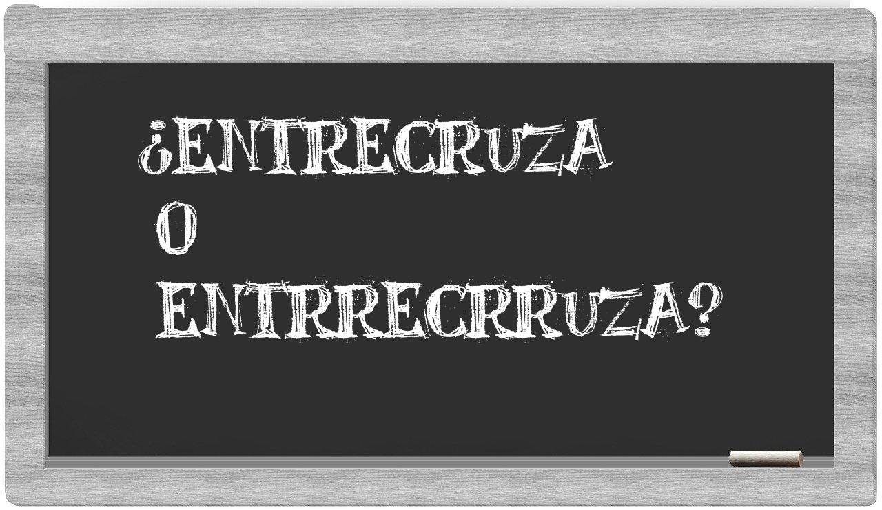 En la situación particular que involucra las palabras entrecruza y entrrecrruza, no debes titubear en absoluto, puesto que solamente entrecruza es la que se encuentra correctamente registrada. En cambio, entrrecrruza no figura en el Diccionario de la Real Academia Española.