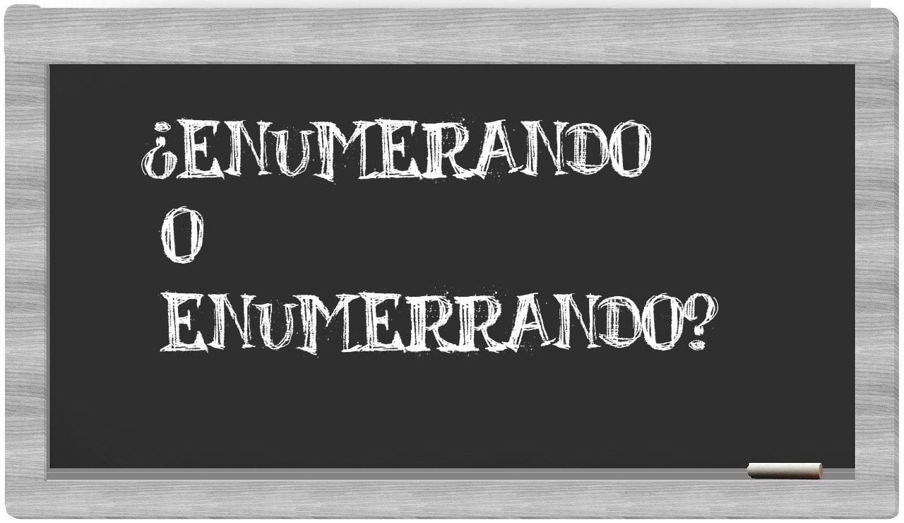 La mezcla entre enumerando y enumerrando surge, en gran parte, por la similitud en su pronunciación. En numerosos dialectos del español, ambas palabras resuenan de forma casi idéntica, lo que puede inducir a concluir que poseen una escritura equivalente. Sin embargo, la manera adecuada de escribir cada término se basa en su etimología y en las normas particulares que rigen la ortografía del español.