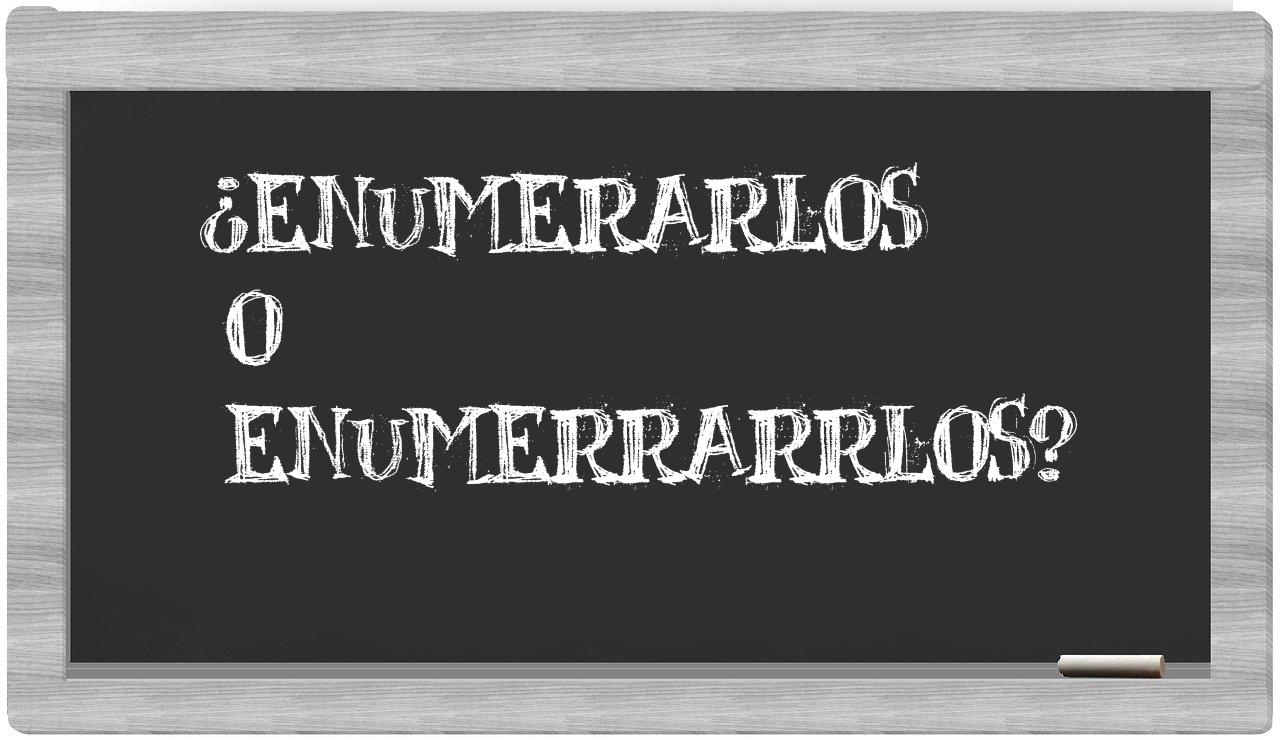 Cuando se confrontan los términos enumerarlos y enumerrarrlos, es crucial que no haya titubeos, puesto que solo enumerarlos es la opción adecuada y reconocida, mientras que enumerrarrlos carece de reconocimiento en el prestigioso Diccionario de la Real Academia Española.