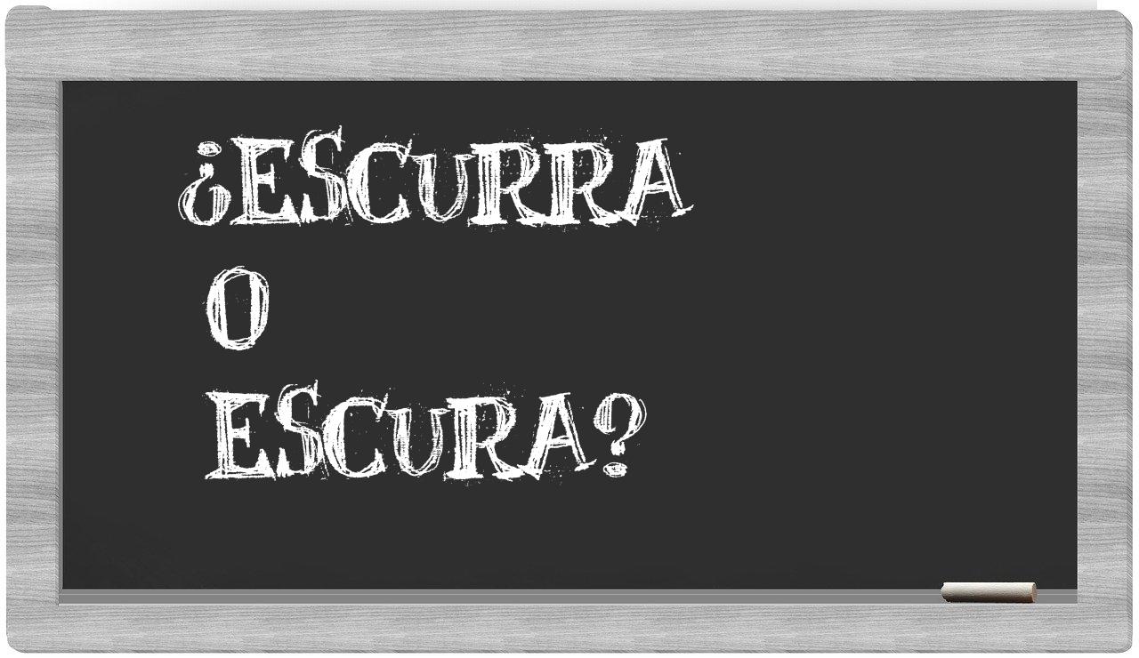 Cuando te enfrentes a la disyuntiva entre escurra y escura, ten certeza de que solo escurra cuenta con la escritura adecuada, puesto que escura no se encuentra registrada en el Diccionario de la Real Academia Española.