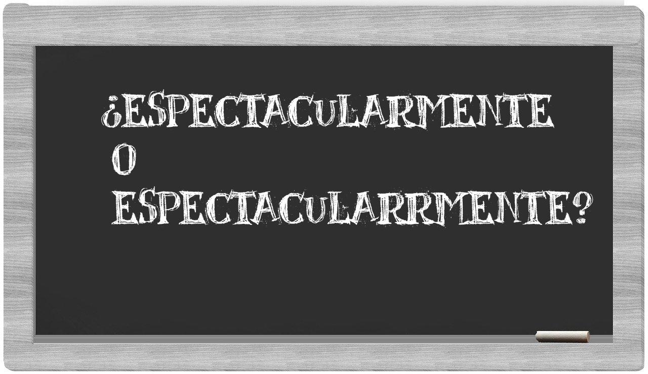 Cuando te enfrentes a la comparación entre los términos espectacularmente y espectacularrmente, es esencial que no titubees, porque únicamente espectacularmente se encuentra correctamente escrita. Por otra parte, espectacularrmente no figura en el léxico de la Real Academia Española.