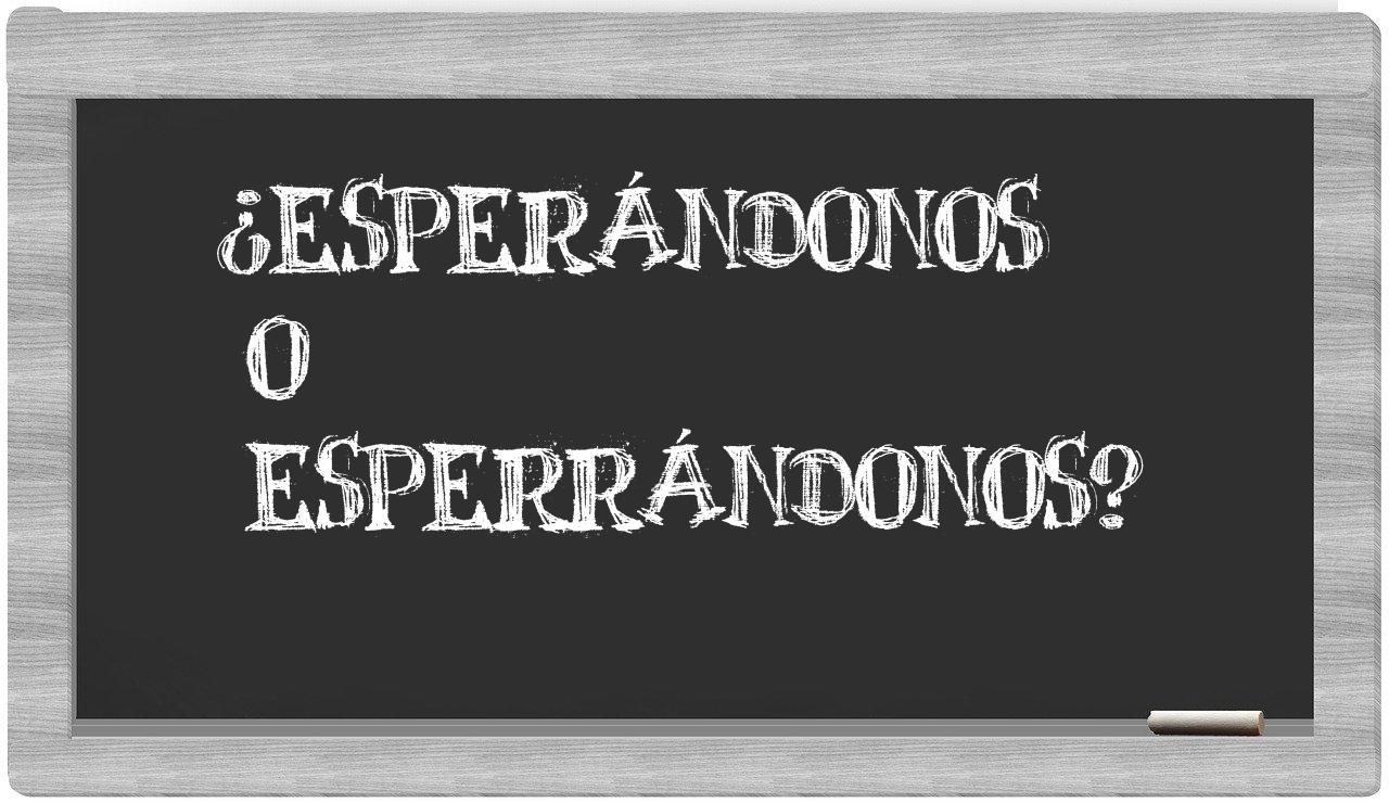 En la particular situación que se presenta entre los términos esperándonos y esperrándonos, es crucial que no titubees, puesto que únicamente esperándonos se encuentra correctamente redactada. Por otro lado, esperrándonos no se encuentra en el repertorio del Diccionario de la Real Academia Española.