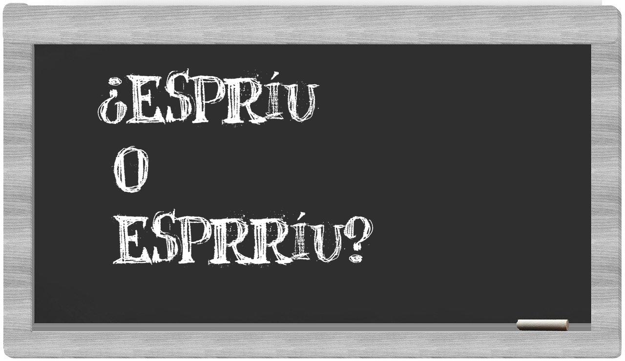 Cuando se presenta la disyuntiva entre espríu y esprríu, la elección debería ser clara, ya que únicamente espríu se encuentra debidamente registrada en el Diccionario de la Real Academia Española, mientras que esprríu queda excluida de su listado oficial.
