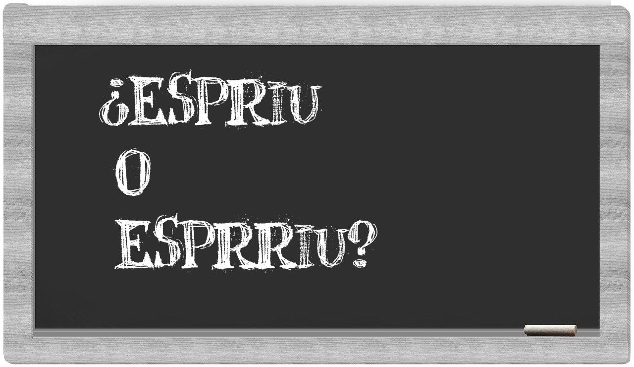 En la situación particular que se presenta entre los términos espriu y esprriu, es fundamental que no tengas ninguna incertidumbre, puesto que únicamente espriu se encuentra correctamente redactado. Por otro lado, esprriu no se halla registrado en el Diccionario de la Real Academia Española.