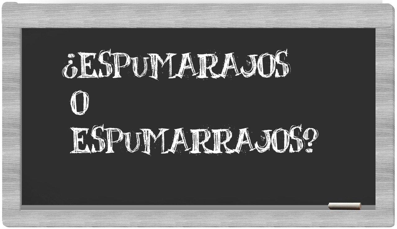 Cuando se trata de las palabras espumarajos y espumarrajos, no deberías titubear, puesto que únicamente espumarajos es la que se presenta correctamente, mientras que espumarrajos no se encuentra registrada en el Diccionario de la Real Academia Española.