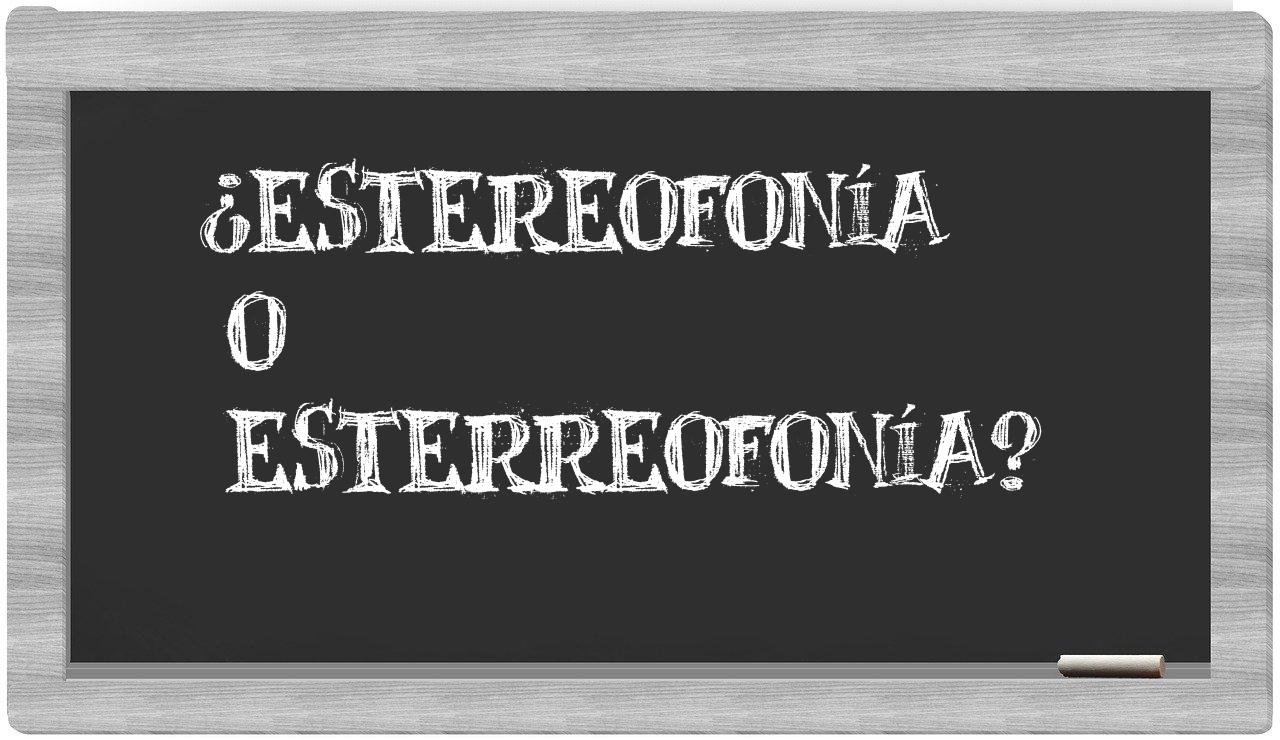 Cuando confrontes las letras de estereofonía y esterreofonía, no deberías experimentar vacilaciones, puesto que únicamente estereofonía se encuentra redactada de manera apropiada; la palabra esterreofonía no se halla en el vocabulario del Diccionario de la Real Academia Española.