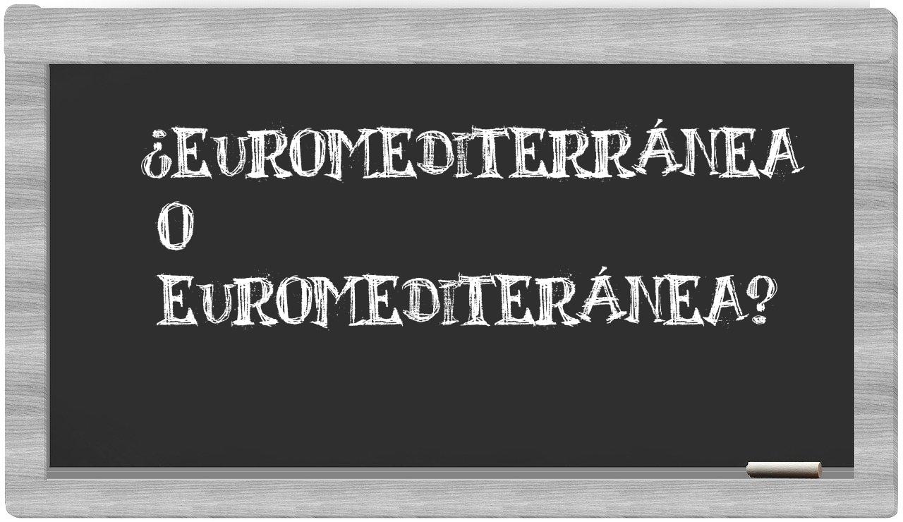 Cuando se trata de la comparación entre euromediterránea y euromediteránea, no hay lugar para la incertidumbre, puesto que únicamente euromediterránea se encuentra debidamente registrada en el vocabulario de la Real Academia de la Lengua, mientras que euromediteránea no figura en su índice oficial.