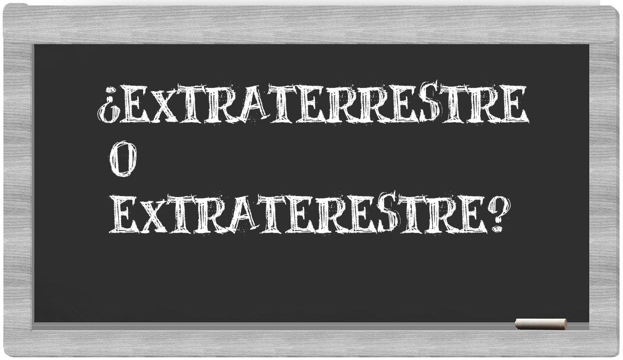 Cuando se trata de decidir entre extraterrestre y extraterestre, no deberías titubear, puesto que solo extraterrestre es la forma adecuada. En cambio, extraterestre no figura en el Diccionario de la Real Academia Española.