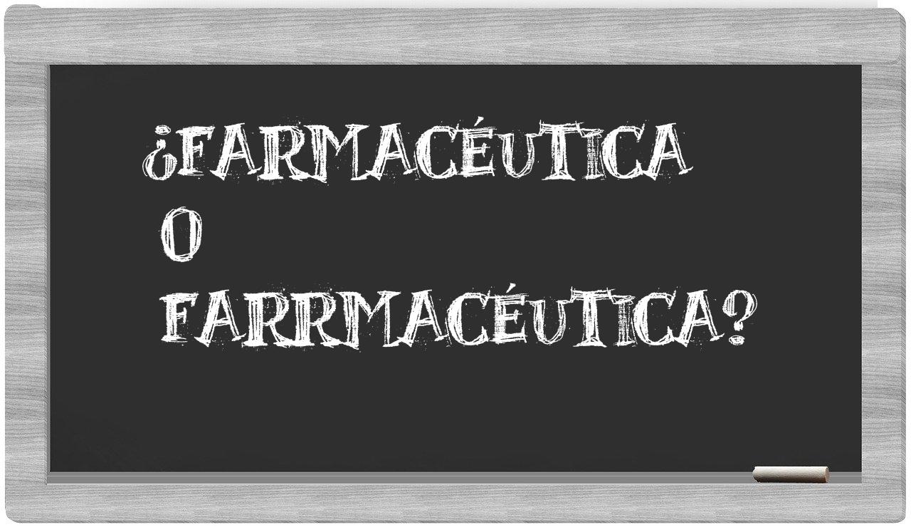 Cuando se trata de decidir entre farmacéutica y farrmacéutica, no deberías titubear, puesto que solo farmacéutica es la forma adecuada. En cambio, farrmacéutica no figura en el Diccionario de la Real Academia Española.