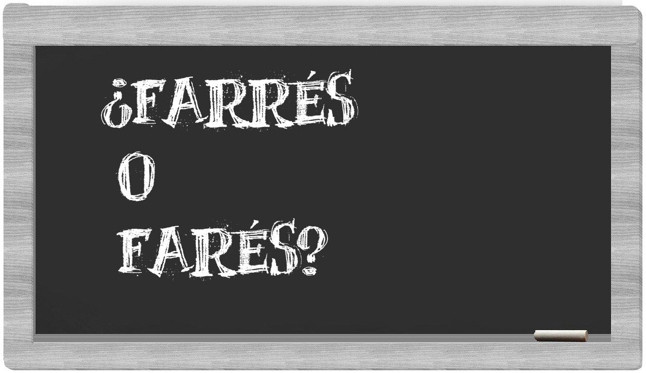 En la particular situación que involucra las expresiones farrés y farés, no deberías titubear en tu elección, dado que únicamente farrés es la forma correcta; por otro lado, farés no se encuentra registrada en el Diccionario de la Real Academia Española.