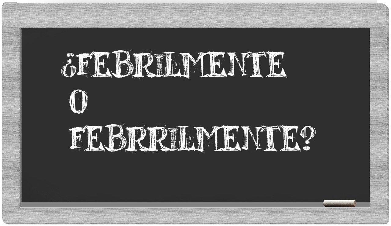 En la situación particular que enfrenta el término febrilmente en contraposición a febrrilmente, la elección no debe generar incertidumbre, puesto que únicamente febrilmente se encuentra debidamente registrada como correcta. Por otro lado, febrrilmente no figura en el listado del Diccionario de la Real Academia Española.