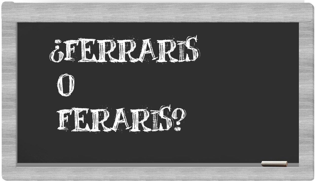 En la situación particular que se presenta entre los términos ferraris y feraris, es fundamental que no tengas ninguna incertidumbre, puesto que únicamente ferraris se encuentra correctamente redactado. Por otro lado, feraris no se halla registrado en el Diccionario de la Real Academia Española.