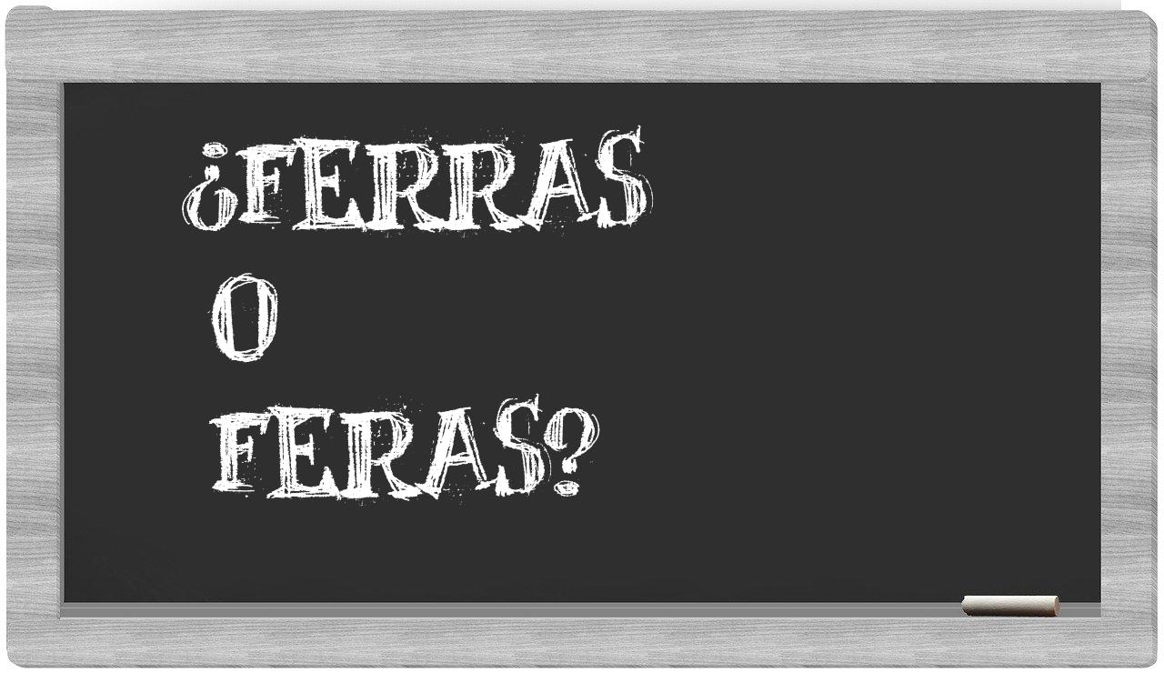 Cuando te encuentres en la situación de elegir entre ferras y feras, es fundamental que no vaciles, puesto que únicamente ferras es la opción adecuada. Ten en cuenta que feras no está reconocida por el Diccionario Oficial de la Real Academia Española.