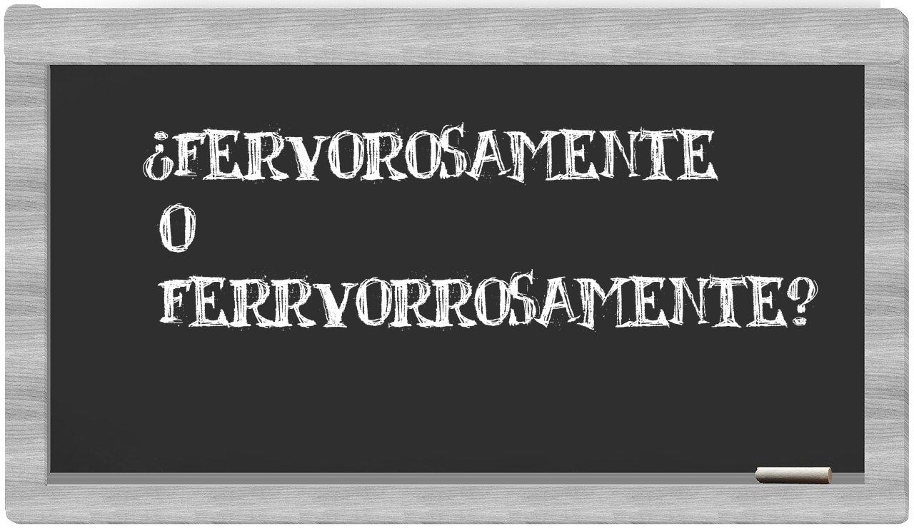 Cuando se trata de la distinción entre fervorosamente y ferrvorrosamente, no hay lugar para la incertidumbre, puesto que únicamente fervorosamente es la forma adecuada; por otro lado, ferrvorrosamente no figura en el léxico del Diccionario de la Real Academia Española.