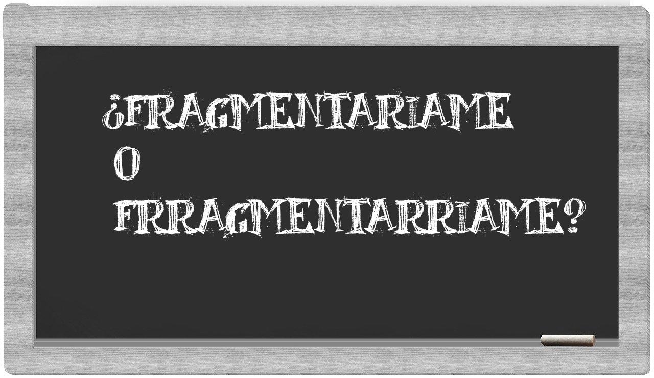 Cuando se trata de elegir entre el término fragmentariame y su confusión asociada con frragmentarriame, la decisión es clara y no debería plantear ningún interrogante, puesto que únicamente fragmentariame se encuentra debidamente registrado en el Diccionario de la Real Academia Española.