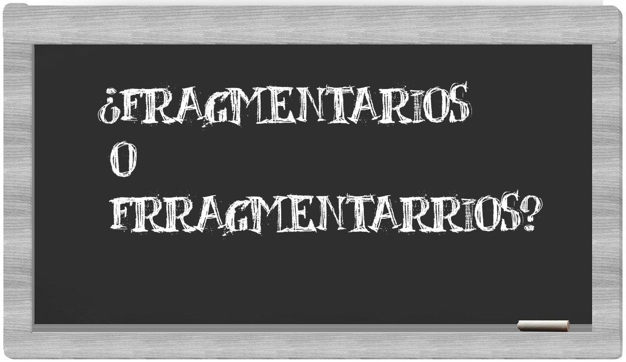 En la particular situación que involucra los términos fragmentarios y frragmentarrios, cualquier incertidumbre sería inapropiada, dado que exclusivamente fragmentarios se encuentra correctamente redactada. Por otro lado, frragmentarrios no figura en el Diccionario de la Real Academia de la Lengua.