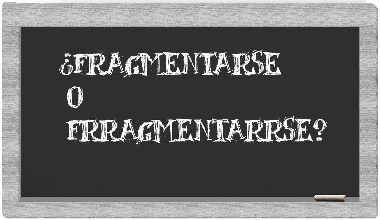 Cuando te encuentres entre los términos fragmentarse y frragmentarrse, no vaciles en tu elección, puesto que únicamente fragmentarse es la forma adecuada; de hecho, frragmentarrse no se encuentra registrada en el Diccionario de la Real Academia Española.