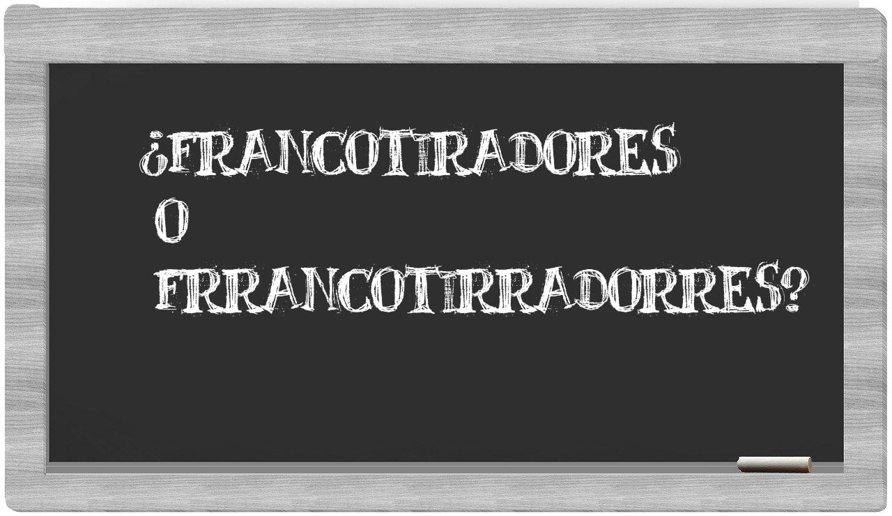 Cuando se presenta la distinción entre francotiradores y frrancotirradorres, la elección debería ser clara, puesto que únicamente francotiradores es la forma aceptada; en cambio, frrancotirradorres no se encuentra registrada en el Diccionario de la Real Academia Española.