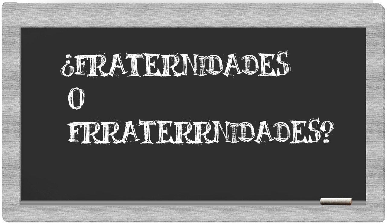 Cuando te enfrentes a la disyuntiva entre fraternidades y frraterrnidades, es crucial que no titubees, pues únicamente fraternidades se encuentra correctamente plasmada en el idioma. Por su parte, frraterrnidades carece de reconocimiento en el prestigioso Diccionario de la Real Academia Española.