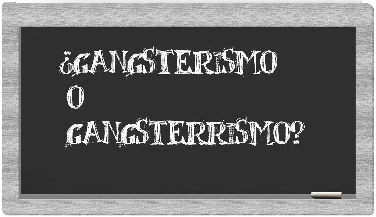 En la situación específica que se presenta entre los términos gangsterismo y gangsterrismo, nunca deberías titubear, dado que únicamente gangsterismo se encuentra correctamente redactada. Por otro lado, gangsterrismo no se encuentra registrada en el Diccionario de la Real Academia Española.