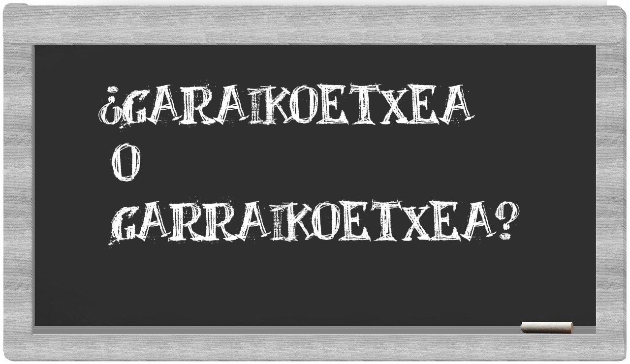 La mezcla entre garaikoetxea y garraikoetxea surge sobre todo por la semejanza en su forma de pronunciarse. En gran parte de las variantes del idioma español, estas dos palabras resuenan casi idénticamente, lo que a menudo lleva a la creencia errónea de que su escritura es idéntica. No obstante, la correcta ortografía de cada término se determina por su raíz etimológica y por las normas particulares que rigen la escritura en español.