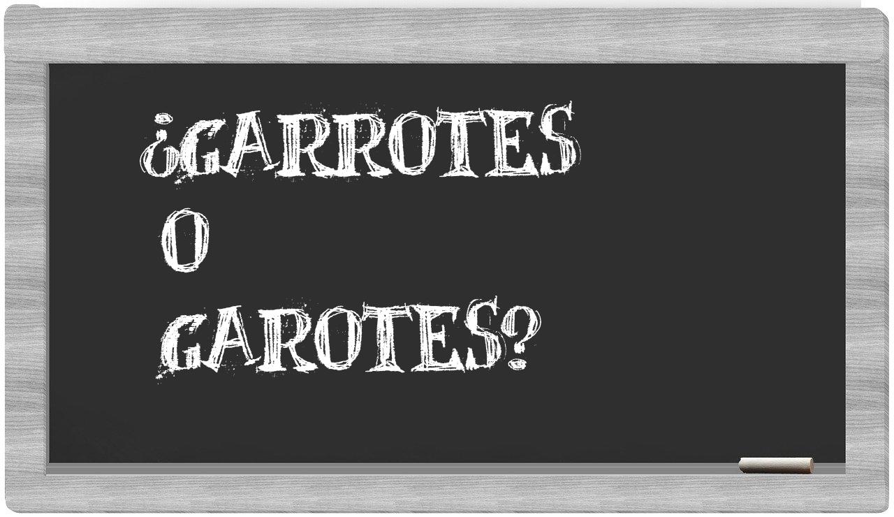 Cuando se trata de la elección entre garrotes y garotes, no hay lugar para la vacilación, puesto que únicamente garrotes dispone de la correcta ortografía. Por otro lado, garotes no se encuentra registrado en el Diccionario de la Real Academia Española.