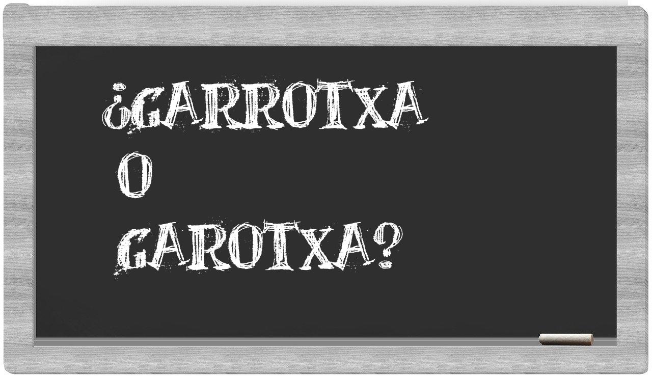La mezcla entre garrotxa y garotxa se origina, en gran parte, por la similitud en su pronunciación. En la mayor parte de los acentos del español, las dos palabras suenan casi idénticas, lo que puede inducir a error al momento de escribirlas. No obstante, la escritura adecuada de cada término está determinada por su raíz etimológica y por las normativas particulares de la lengua española.